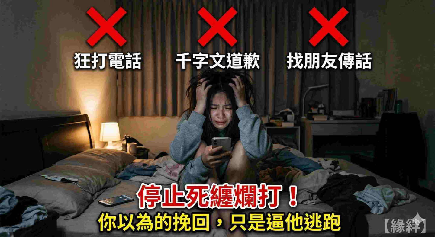 與其像隻無頭蒼蠅一樣亂撞,把局面弄得更難看,不如退一步。停止所有現實中的聯絡,把剩下的事情交給【緣絆】。 讓對方重新有一個「想靠近你」的空間,這才是挽回的第一步。