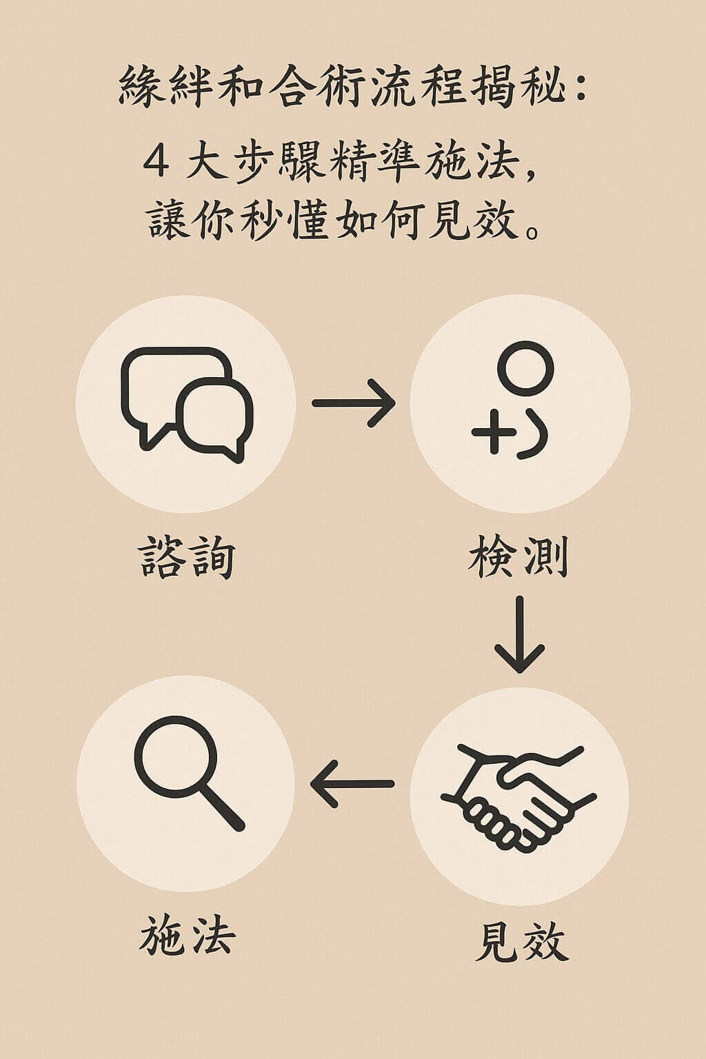 我們堅持透明化、專業化。和合術絕不是點香畫符這麼簡單!它是一套嚴謹的「感情修復流程」,每個環節都為了精準、有效。這就像你看醫生,不能只吃藥,還得先做檢查,找出病因。