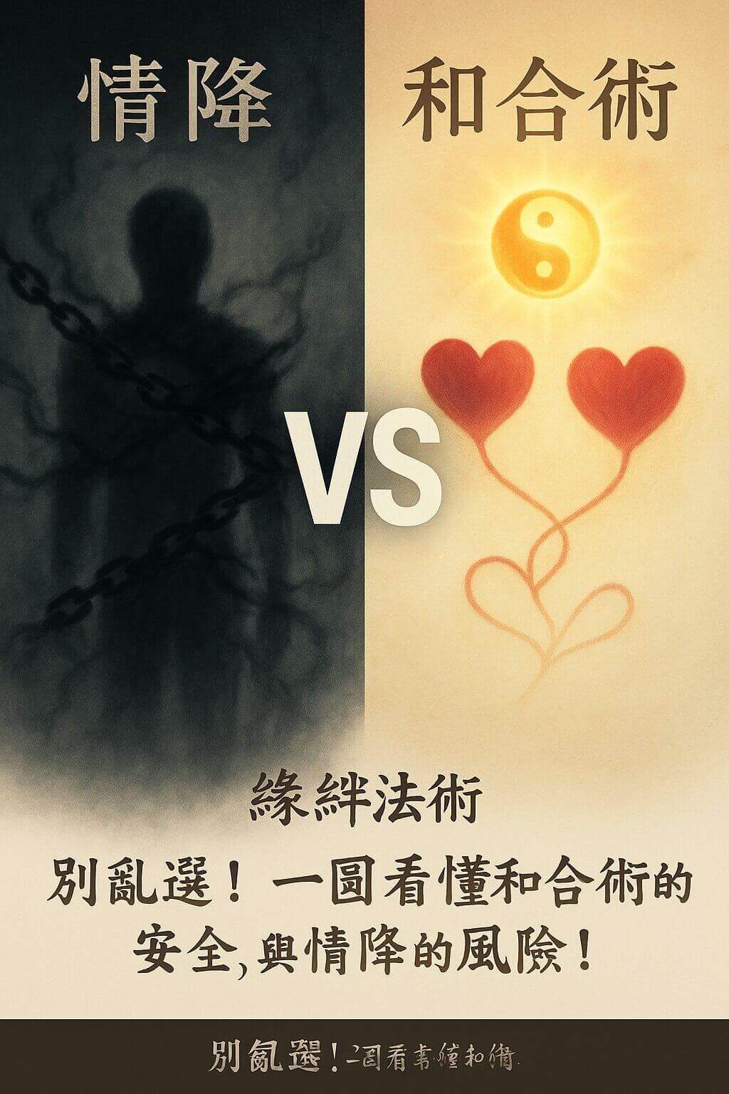 我的老天鵝啊!我要很嚴肅、很負責任地告訴你: 這不是在買菜,可以比價試吃!和合術與情降,是兩種本質、道德、甚至對你未來運勢都有天壤之別的法術。