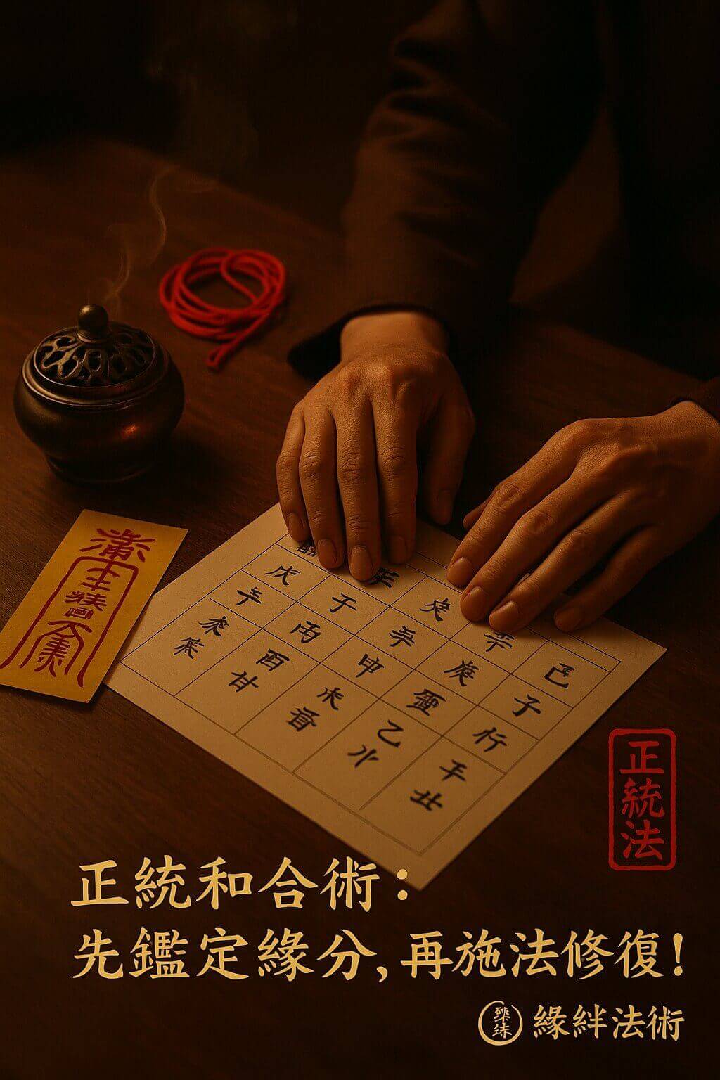 緣絆法術堅持正統道法,以「精準鑑定」為核心,為你的感情提供最安全、有效的修復方案。我們不會給你誇大的保證,但我們會給你最真誠的建議與最紮實的法術助力!